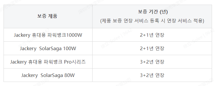 제품의 품질 보증 기간은 아래 표를 참고 바랍니다. 품질 보증 기간은 고객이 제품을 구매한 날부터 계산됩니다.